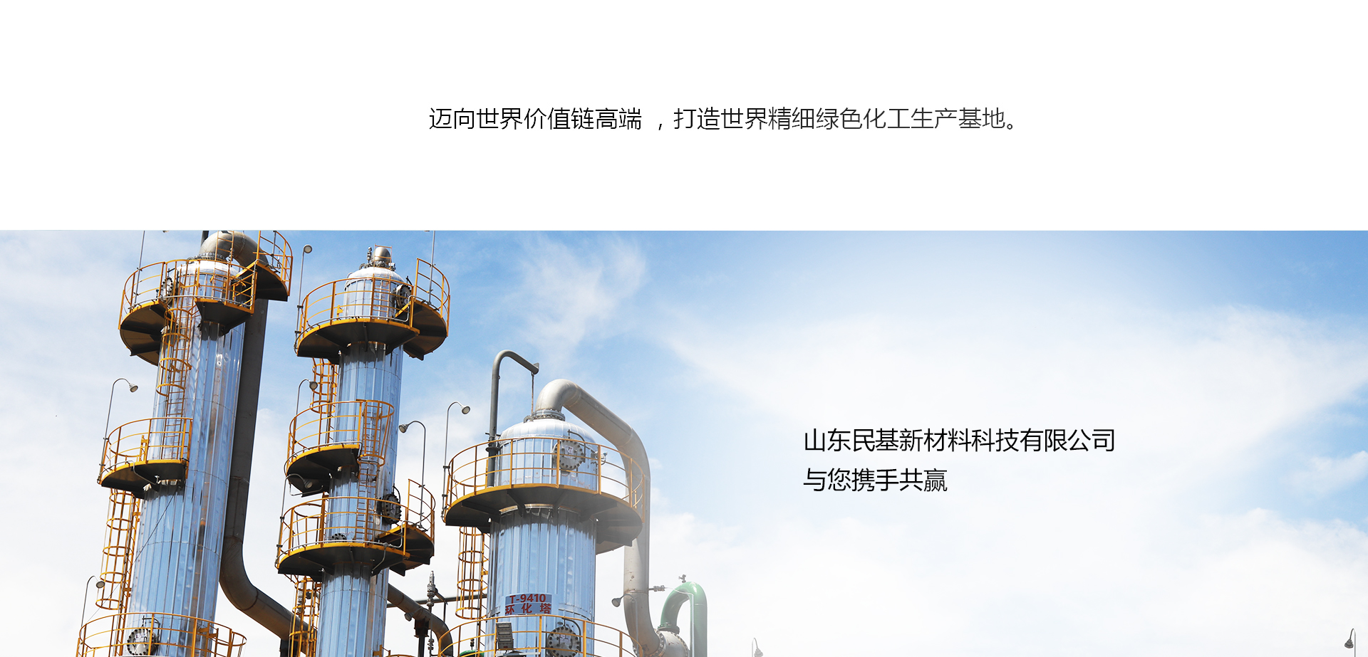 山東民基新材料科技有限公司成立于2008年5月,占地面積20萬(wàn)平方米,注冊(cè)資本1.1億元,是山東省高新技術(shù)企業(yè)、山東省雙體系標(biāo)桿企業(yè)、山東省氯乙酸行業(yè)安全操作規(guī)程起草單位、山東省瞪羚企業(yè)、山東省“專精特新”中小企業(yè)、山東省“中小企業(yè)隱形冠軍”,獲山東省“富民興魯勞動(dòng)獎(jiǎng)狀”、“振興淄博勞動(dòng)獎(jiǎng)狀”、“淄博市勞動(dòng)關(guān)系和諧企業(yè)”、“淄博市示范誠(chéng)信企業(yè)”等榮譽(yù)20余項(xiàng)。擁有省級(jí)和市級(jí)“一企一技術(shù)”研發(fā)中心、淄博市工程研究中心,已申報(bào)、擁有專利30余項(xiàng)。 公司主要產(chǎn)品:氯乙酸、環(huán)氧氯丙烷、三甲基乙酸、三甲基乙酰氯、氯代特戊酰氯、濃硫酸、發(fā)煙硫酸、液體二氧化硫等,組成了“氯乙酸—環(huán)氧氯丙烷”、“三甲基乙酸—三甲基乙酰氯—氯代特戊酰氯”兩條綠色循環(huán)產(chǎn)品鏈,其中氯乙酸單套裝置產(chǎn)能全球第一。產(chǎn)品廣泛用于醫(yī)藥、農(nóng)藥、染料、膠粘劑等行業(yè),深受國(guó)內(nèi)外市場(chǎng)青睞。公司擁有自營(yíng)出口權(quán),通過(guò)了三體系認(rèn)證,獲頒歐盟3A信用評(píng)估證書(shū)、國(guó)內(nèi)3A級(jí)信用企業(yè)證書(shū)。 建基筑業(yè)十余年,公司始終踐行“創(chuàng)新驅(qū)動(dòng)、高端智能、高質(zhì)高效、綠色循環(huán)”發(fā)展理念,集中資源,定向發(fā)力,堅(jiān)守主業(yè),聚焦項(xiàng)目,聚力創(chuàng)新,致力于研發(fā)構(gòu)建“投入-產(chǎn)出-資源循環(huán)利用”的安全環(huán)保綠色制造體系,打造了新舊動(dòng)能轉(zhuǎn)換的“民基樣板”。